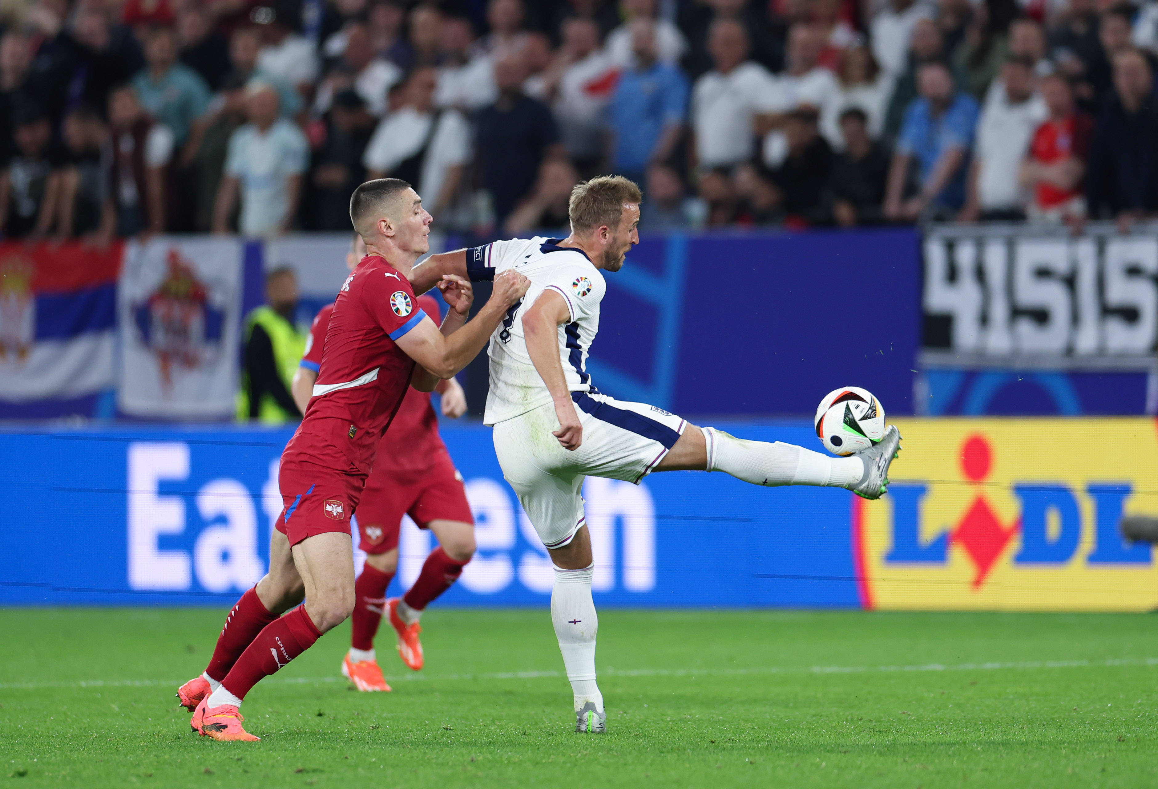 随后,英格兰攻势更盛。第 35 分钟,安德森为凯恩做球,凯恩禁区弧顶的射门被防守球员挡出底线;第 39 分钟,安德森再次直传,凯恩禁区弧顶前偏右位置的低射稍稍偏出右门柱。连续错失机会后,凯恩在半场尾声迎来爆发:第 44 分钟,他在禁区弧顶内右侧接队友传球,一脚低射直钻左下角,将比分扩大至 2-0;补时第 1 分钟,英格兰获得角球机会,塞尔诺莫尔迪斯在禁区内推倒凯恩,主裁果断判罚点球,VAR 复核后维持原判,塞尔诺莫尔迪斯还吃到一张黄牌。补时第 3 分钟,凯恩主罚点球稳稳命中,完成梅开二度,英格兰带着 3-0 的领先优势进入中场休息。